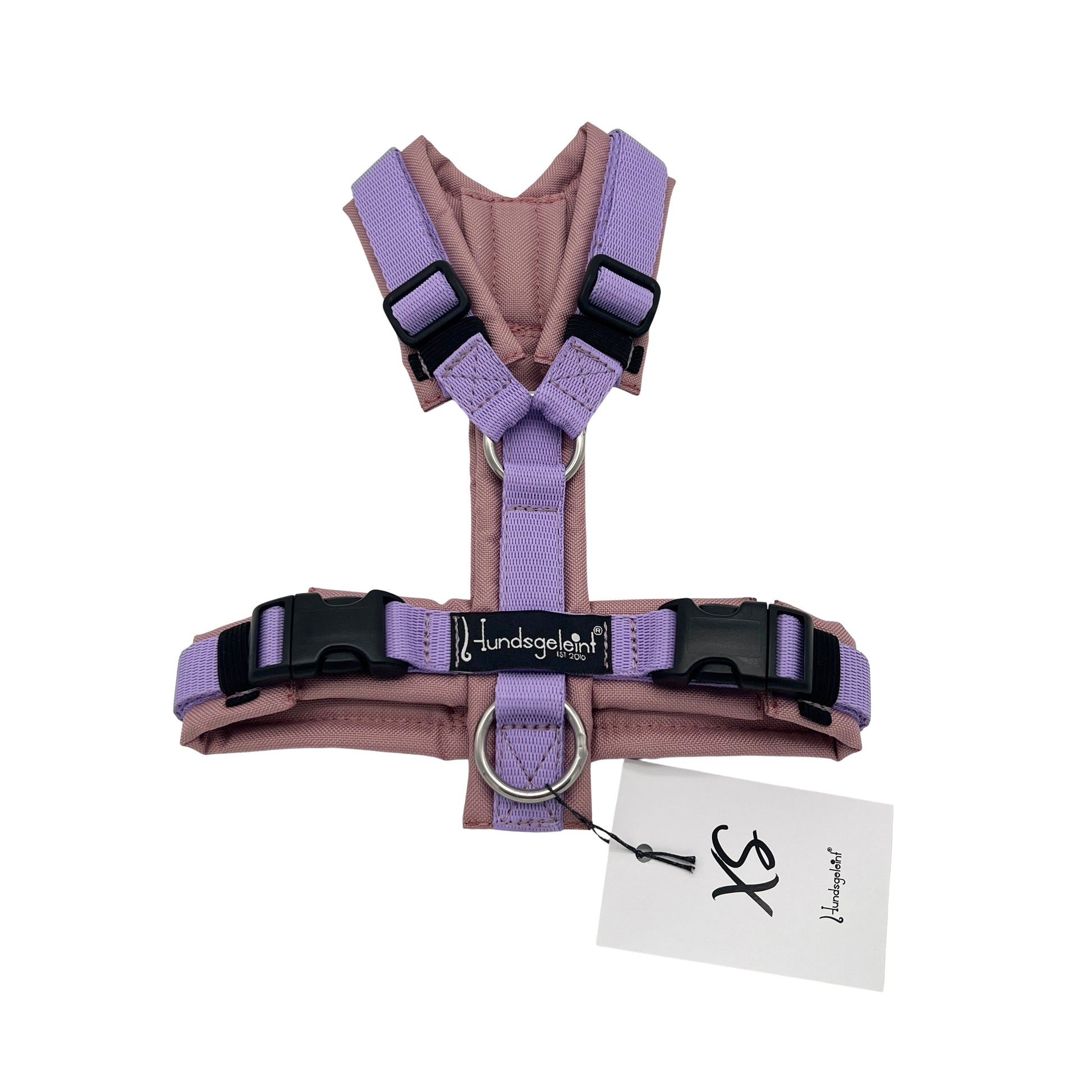 Die Geschirre werden mit stabilem Gurtband, Edelstahlringen (wahlweise Messingringen) und bruchsicheren Steckschnallen hergestellt. Das Polster aus hochwertigem Outdoorstoff ist robust, wasserabweisend und sorgt durch die innenliegende Füllung für zusätzlichen Tragekomfort.
