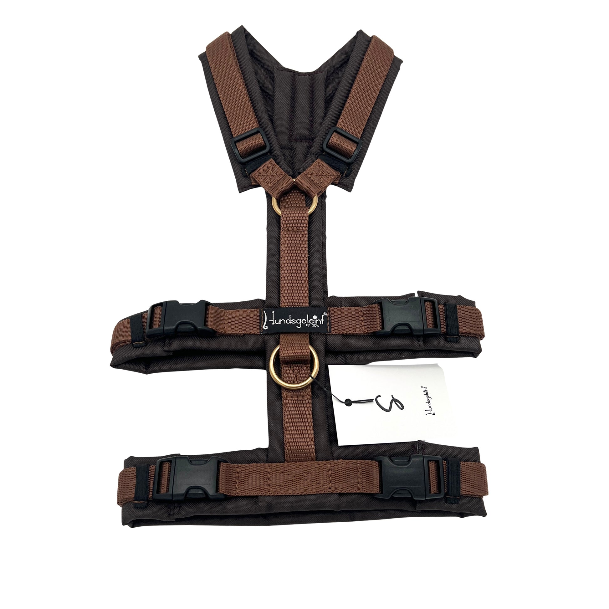 Die Geschirre werden mit stabilem Gurtband, Edelstahlringen und bruchsicheren Steckschnallen hergestellt. Das Polster aus hochwertigem Outdoorstoff ist robust, wasserabweisend und sorgt durch die innenliegende Füllung für zusätzlichen Tragekomfort.