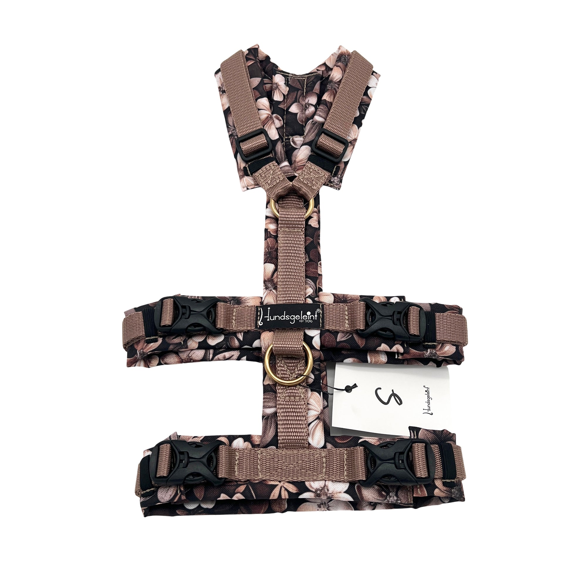 Die Geschirre werden mit stabilem Gurtband, Edelstahlringen und bruchsicheren Steckschnallen hergestellt. Das Polster aus hochwertigem Outdoorstoff ist robust, wasserabweisend und sorgt durch die innenliegende Füllung für zusätzlichen Tragekomfort.