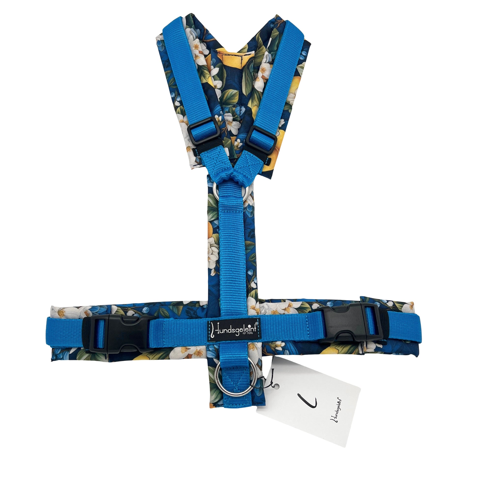 Die Geschirre werden mit stabilem Gurtband, Edelstahlringen (wahlweise Messingringen) und bruchsicheren Steckschnallen hergestellt. Das Polster aus hochwertigem Outdoorstoff ist robust, wasserabweisend und sorgt durch die innenliegende Füllung für zusätzlichen Tragekomfort.
