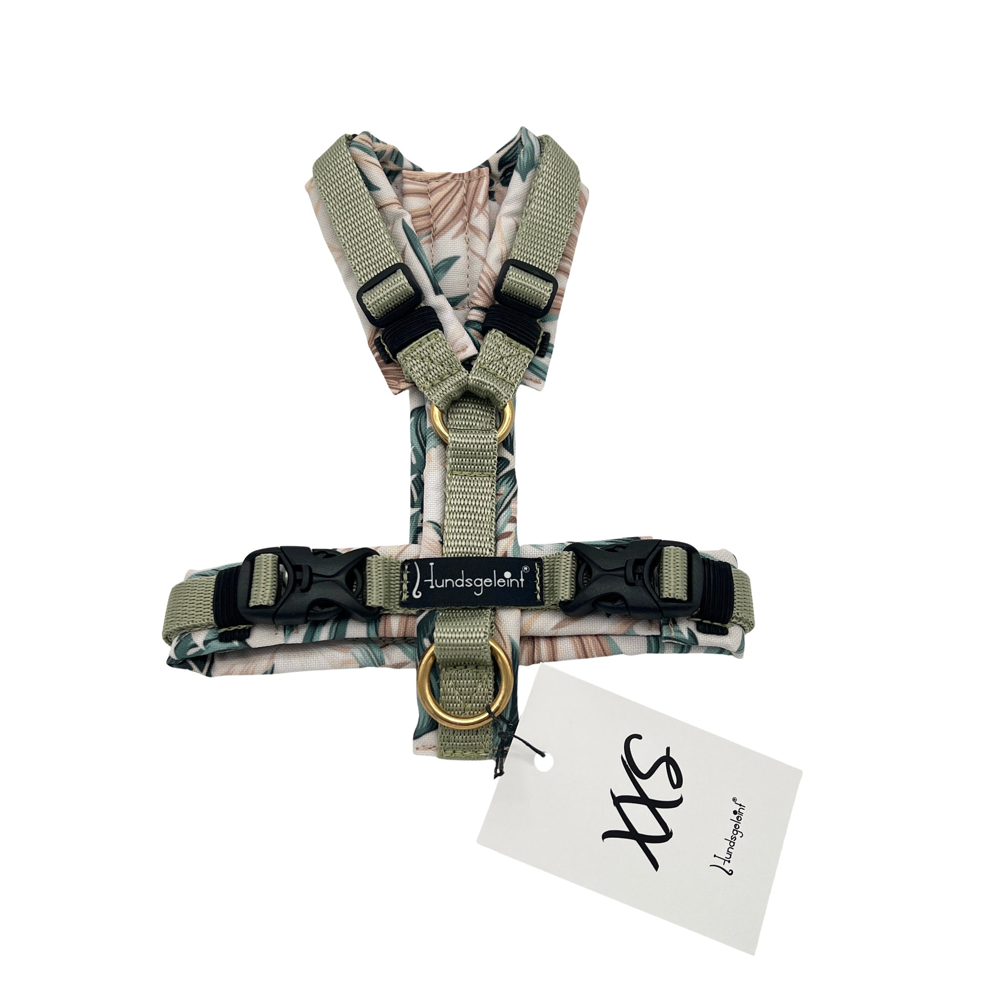 Die Geschirre werden mit stabilem Gurtband, Edelstahlringen (wahlweise Messingringen) und bruchsicheren Steckschnallen hergestellt. Das Polster aus hochwertigem Outdoorstoff ist robust, wasserabweisend und sorgt durch die innenliegende Füllung für zusätzlichen Tragekomfort.