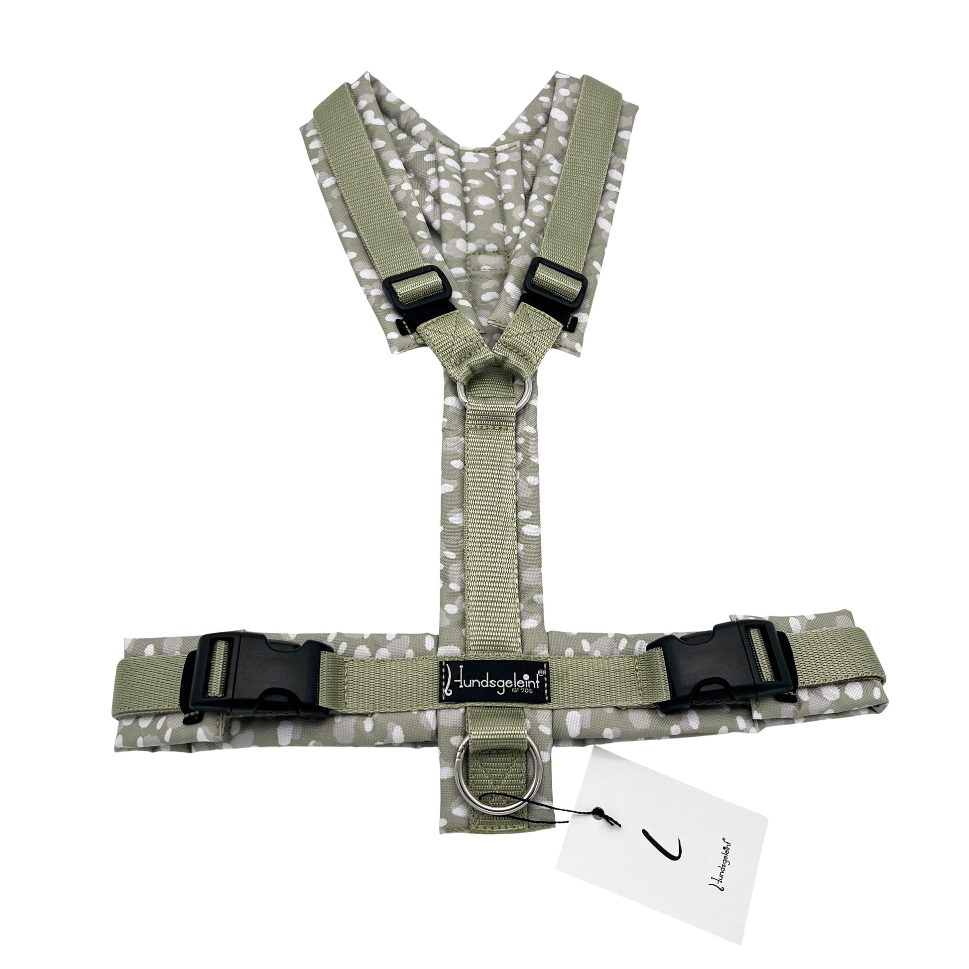 Die Geschirre werden mit stabilem Gurtband, Edelstahlringen (wahlweise Messingringen) und bruchsicheren Steckschnallen hergestellt. Das Polster aus hochwertigem Outdoorstoff ist robust, wasserabweisend und sorgt durch die innenliegende Füllung für zusätzlichen Tragekomfort.