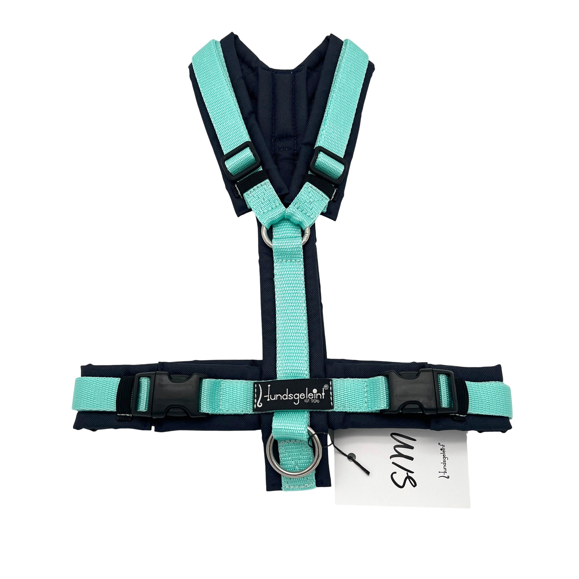 Die Geschirre werden mit stabilem Gurtband, Edelstahlringen (wahlweise Messingringen) und bruchsicheren Steckschnallen hergestellt. Das Polster aus hochwertigem Outdoorstoff ist robust, wasserabweisend und sorgt durch die innenliegende Füllung für zusätzlichen Tragekomfort.