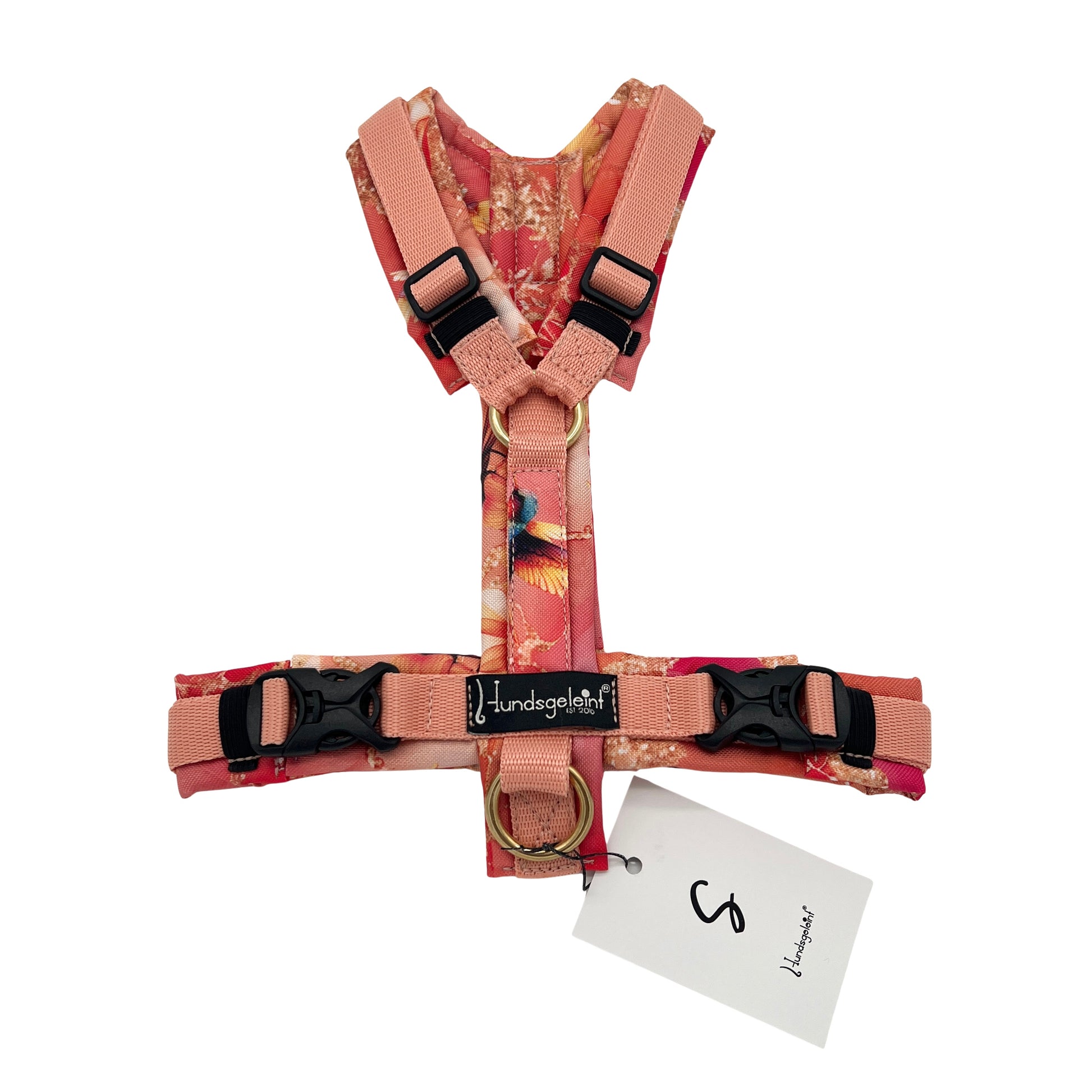 Die Geschirre werden mit stabilem Gurtband, Edelstahlringen (wahlweise Messingringen) und bruchsicheren Steckschnallen hergestellt. Das Polster aus hochwertigem Outdoorstoff ist robust, wasserabweisend und sorgt durch die innenliegende Füllung für zusätzlichen Tragekomfort.
