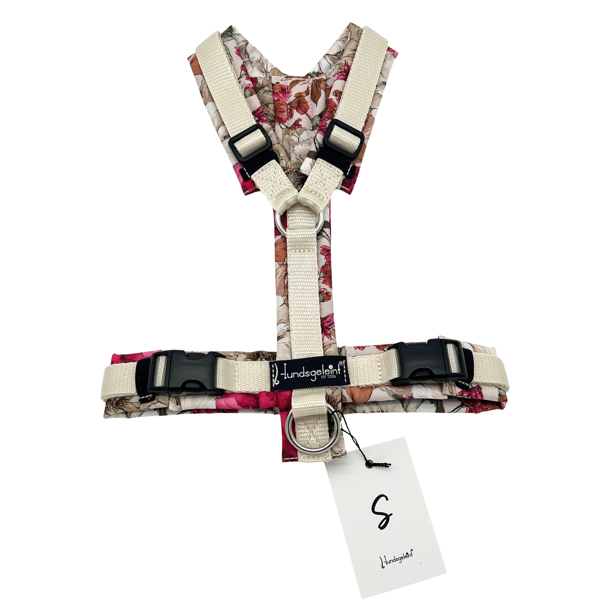 Die Geschirre werden mit stabilem Gurtband, Edelstahlringen (wahlweise Messingringen) und bruchsicheren Steckschnallen hergestellt. Das Polster aus hochwertigem Outdoorstoff ist robust, wasserabweisend und sorgt durch die innenliegende Füllung für zusätzlichen Tragekomfort.