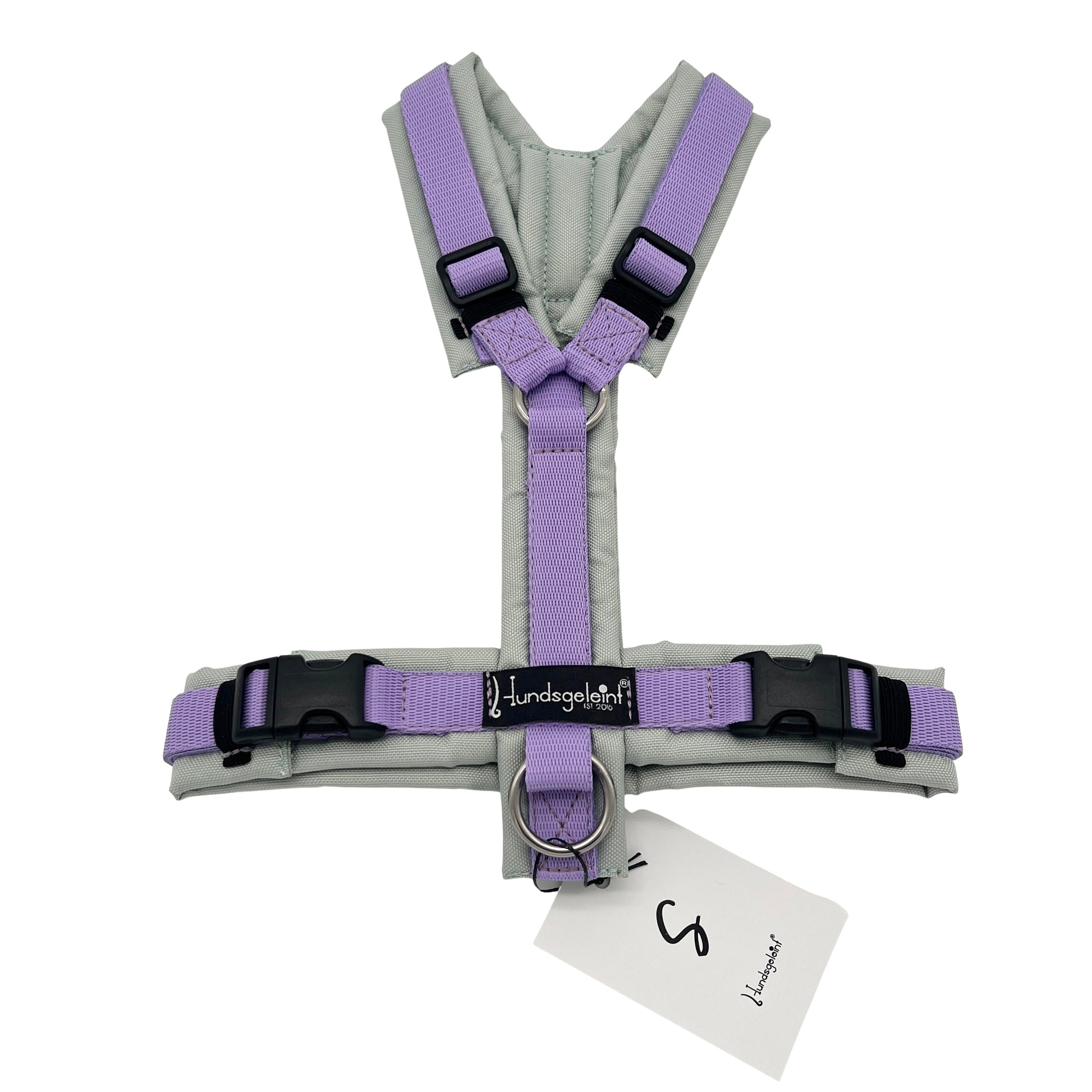 Die Geschirre werden mit stabilem Gurtband, Edelstahlringen (wahlweise Messingringen) und bruchsicheren Steckschnallen hergestellt. Das Polster aus hochwertigem Outdoorstoff ist robust, wasserabweisend und sorgt durch die innenliegende Füllung für zusätzlichen Tragekomfort.