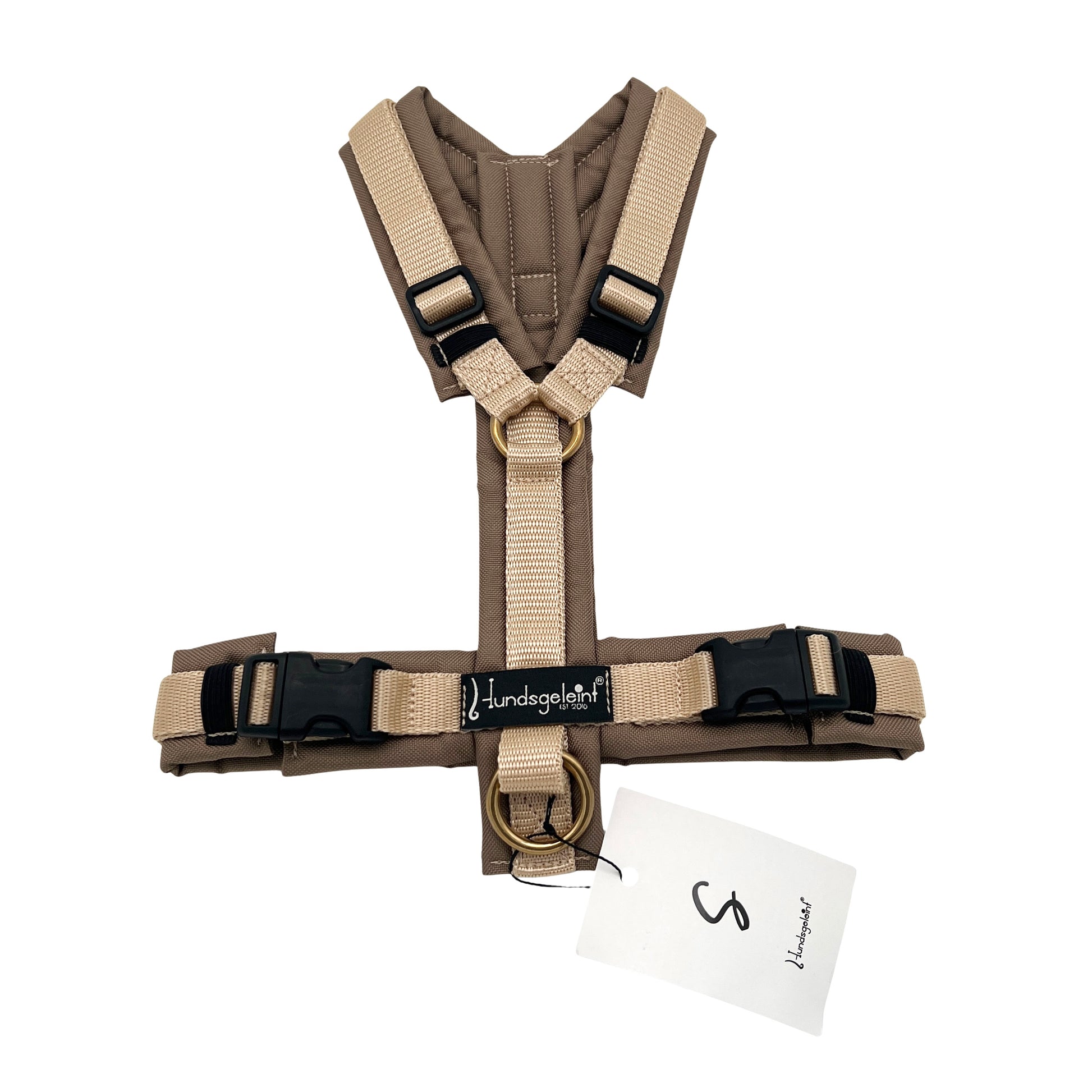 Die Geschirre werden mit stabilem Gurtband, Edelstahlringen (wahlweise Messingringen) und bruchsicheren Steckschnallen hergestellt. Das Polster aus hochwertigem Outdoorstoff ist robust, wasserabweisend und sorgt durch die innenliegende Füllung für zusätzlichen Tragekomfort.