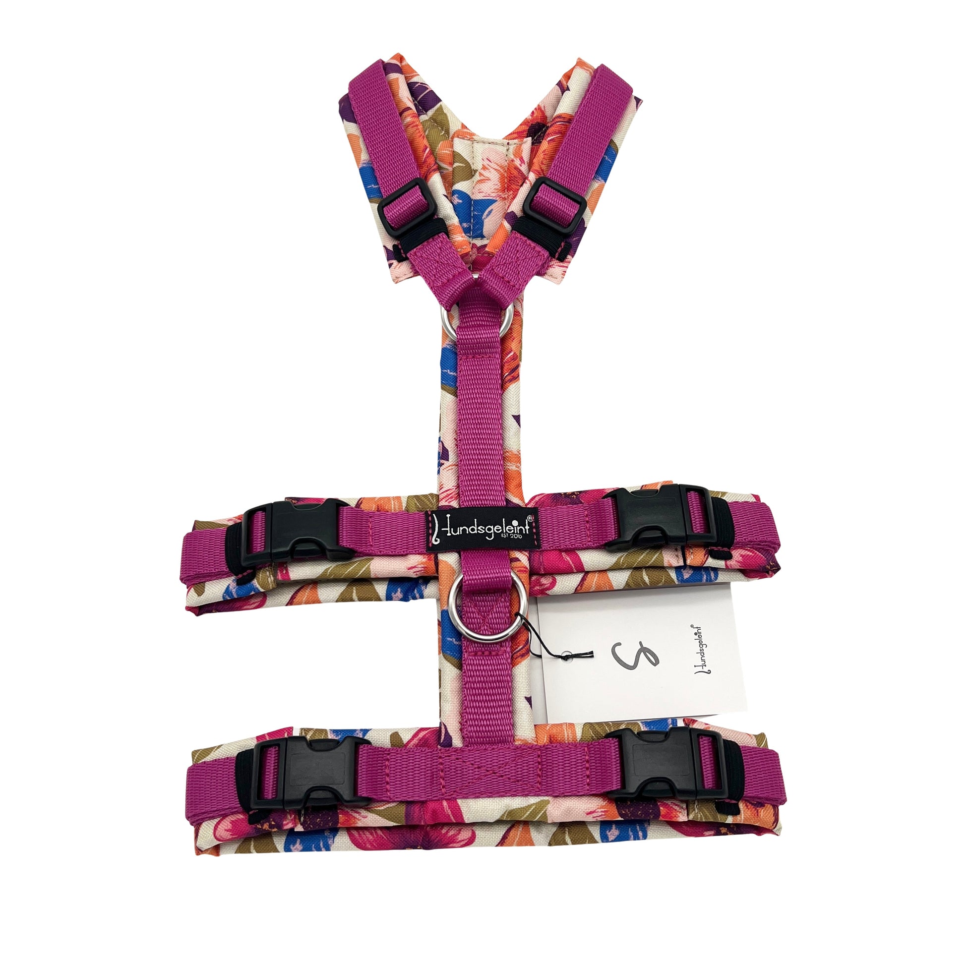 Die Geschirre werden mit stabilem Gurtband, Edelstahlringen und bruchsicheren Steckschnallen hergestellt. Das Polster aus hochwertigem Outdoorstoff ist robust, wasserabweisend und sorgt durch die innenliegende Füllung für zusätzlichen Tragekomfort.