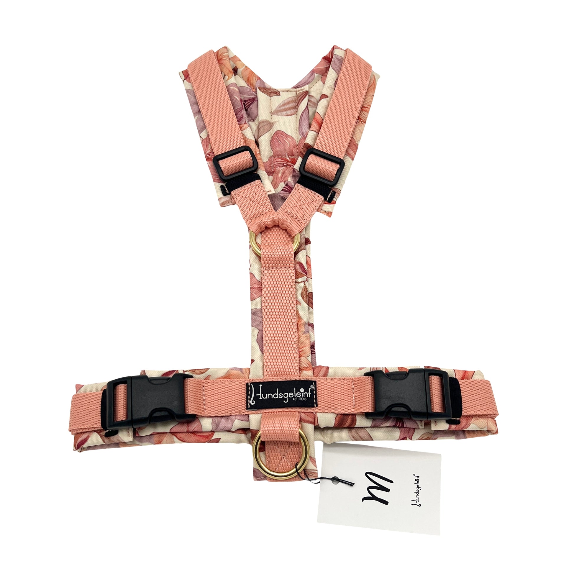 Die Geschirre werden mit stabilem Gurtband, Edelstahlringen (wahlweise Messingringen) und bruchsicheren Steckschnallen hergestellt. Das Polster aus hochwertigem Outdoorstoff ist robust, wasserabweisend und sorgt durch die innenliegende Füllung für zusätzlichen Tragekomfort.