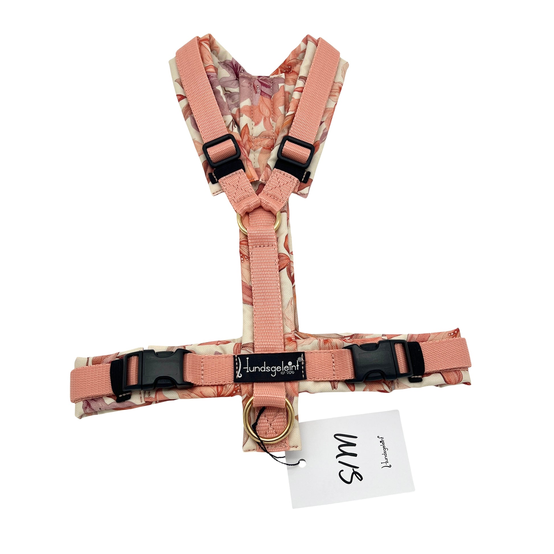Die Geschirre werden mit stabilem Gurtband, Edelstahlringen (wahlweise Messingringen) und bruchsicheren Steckschnallen hergestellt. Das Polster aus hochwertigem Outdoorstoff ist robust, wasserabweisend und sorgt durch die innenliegende Füllung für zusätzlichen Tragekomfort.