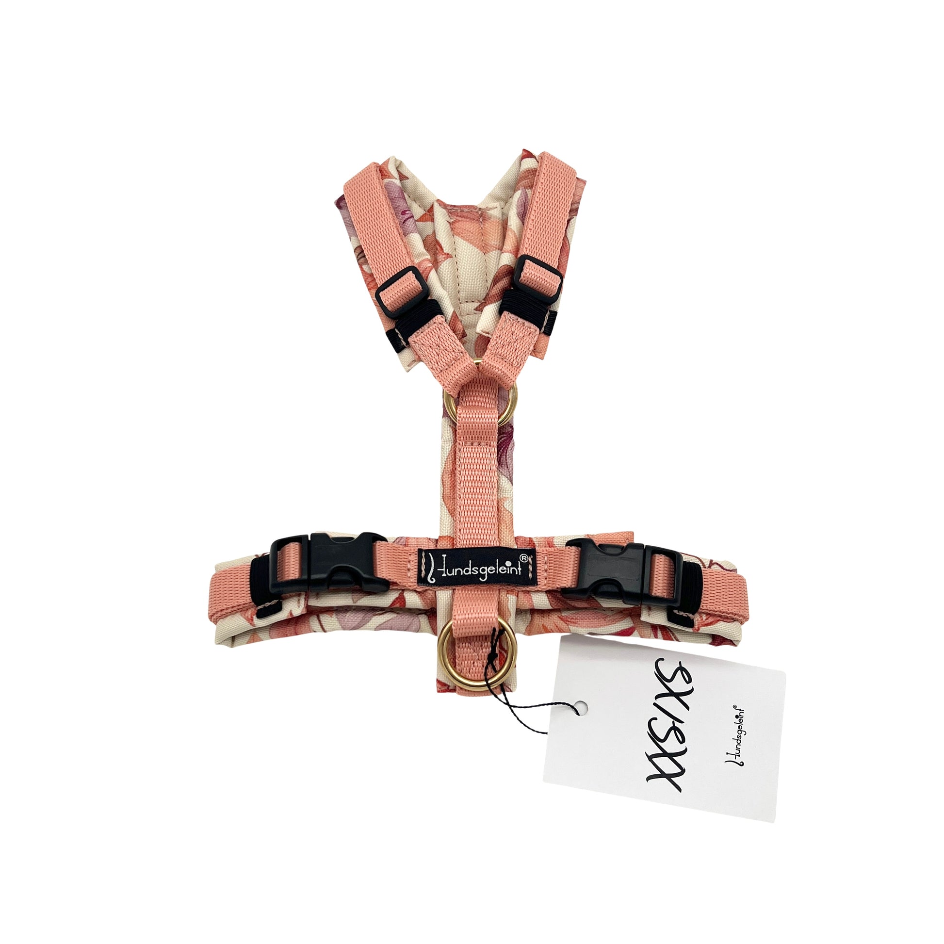 Die Geschirre werden mit stabilem Gurtband, Edelstahlringen (wahlweise Messingringen) und bruchsicheren Steckschnallen hergestellt. Das Polster aus hochwertigem Outdoorstoff ist robust, wasserabweisend und sorgt durch die innenliegende Füllung für zusätzlichen Tragekomfort.